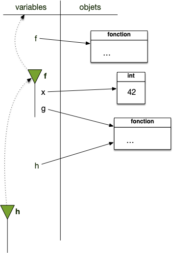 gest créée et elle est associée à l'espace de nommage de l'exécution de f (qui n'est donc pas détruit à la fin de l'exécution defpuisque la fonction g existe dans l'espace des variables via le nomh):